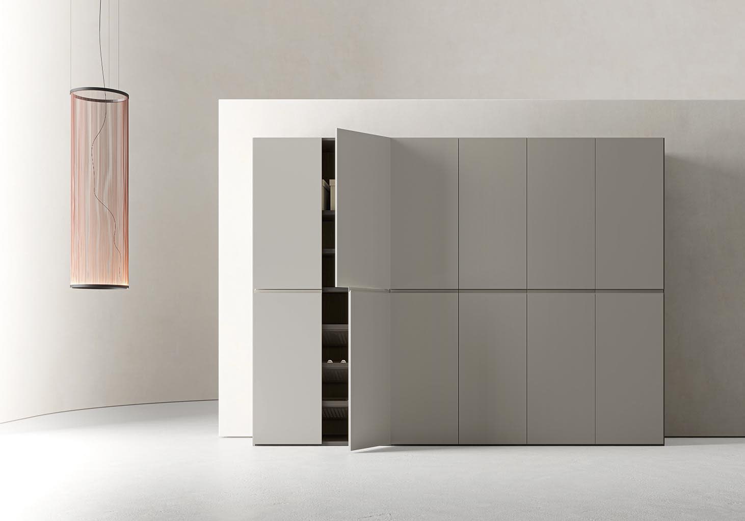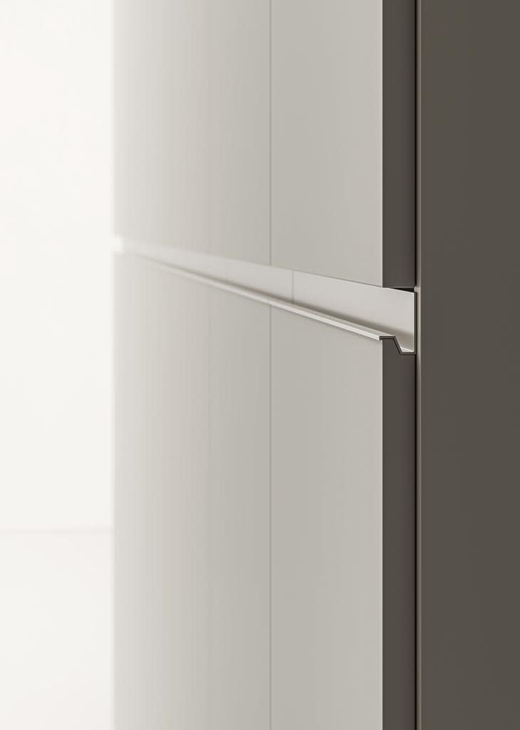The Orizon door by designer Enrico Cesana embodies contemporary minimalism and functionality for your wardrobe space. This hinged door is specifically designed for seasonal swinging wardrobes, offering not only impeccable aesthetics but also thoughtful engineering solutions. The key feature of Orizon is its unique horizontal handle profile, which not only provides easy and convenient opening but also visually divides the door panel into two parts, adding dynamism and sophistication to the design. Orizon perfectly integrates into modern interiors where clean lines, conciseness, and maximum practicality are valued. Crafted in Italy, this door reflects the highest standards of European design and quality. It will transform your wardrobe, making it more organized and stylish, highlighting your impeccable taste. Discover the perfection of form and function with the Orizon door. For more details and finish options, please contact us.