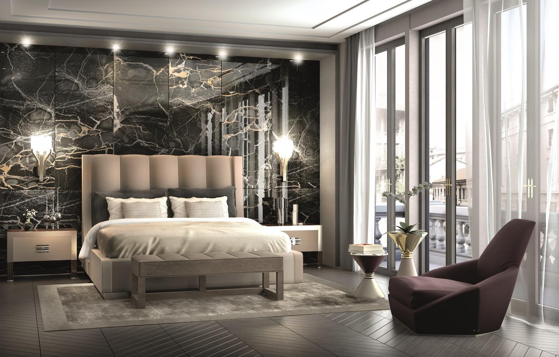 Constructed from high-quality glossy lacquered wood, the Orwell features legs and a frame that are elegantly covered in sumptuous leather or cashmere from Loro Piana Interiors. The base and cornice are detailed with a ground metal finish, adding a touch of opulence to the overall design. The top of the bedside table is customizable with options such as bronze or smoky mirror, painted black glass, glossy lacquered wood, and luxurious marble selections like Calacatta Gold and Emperador Dark marble.