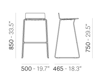 The Osaka Metal barstool features a sturdy sled base made of Ø 11 mm steel bars, providing both stability and a stylish touch. With a seat height of 750 mm, this barstool is perfect for both residential and commercial spaces looking to add a touch of sophistication.