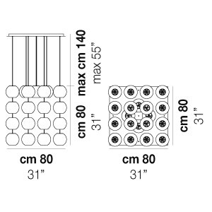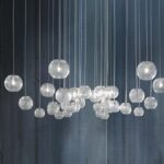 Crafted with a crystal striped or white striped shade, the Oto Sp Cub features a mirrored steel, white, or nickel frame that adds a touch of elegance to any room. The spherical blown glass elements come in four sizes and two decorations, giving you the flexibility to create custom combinations that suit your unique style.