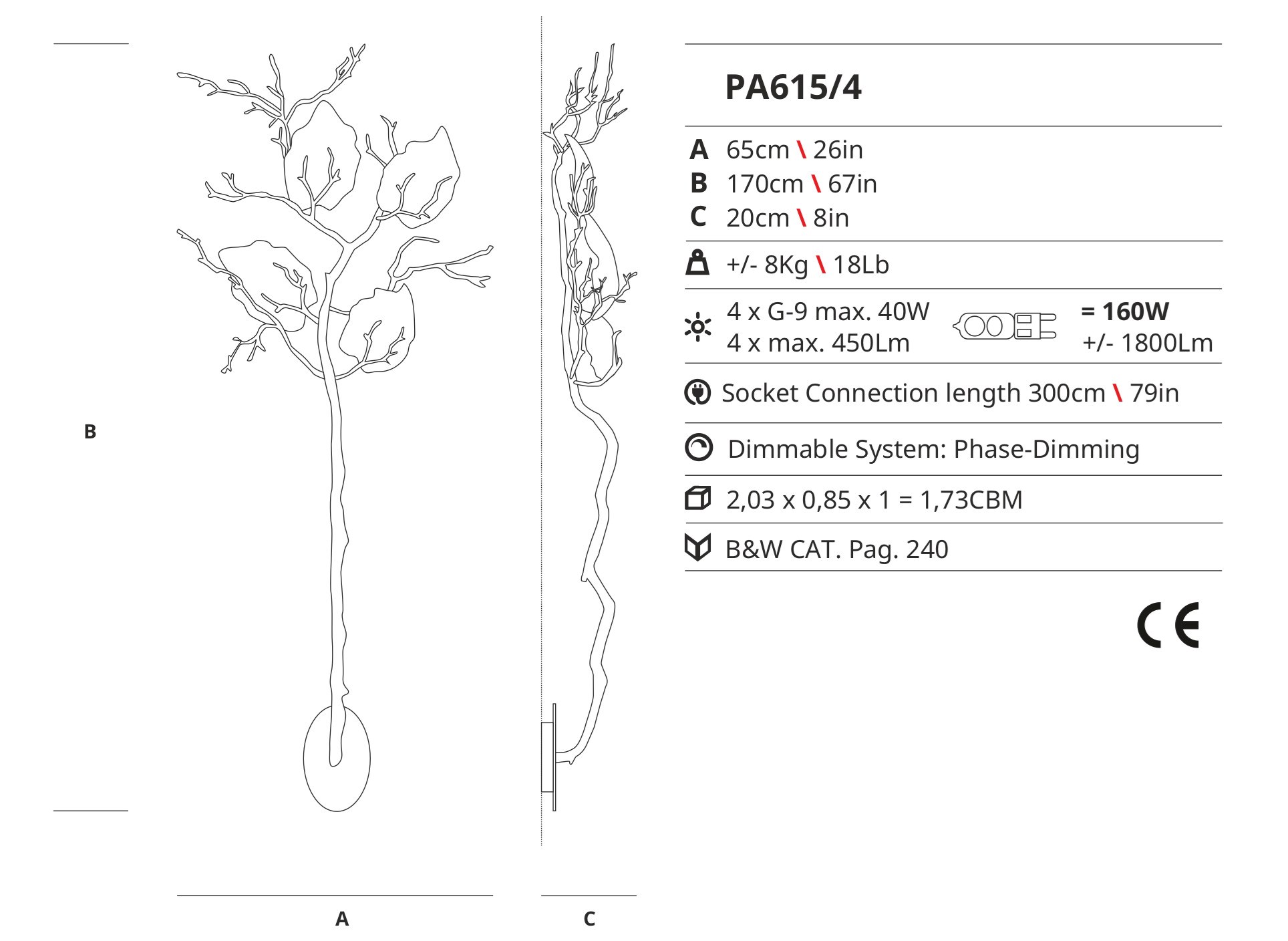 Inspired by the nostalgic and emotional autumn season, this wall lamp is a true work of art that will add a touch of luxury to your home. Whether placed in a living room, bedroom, or hallway, the Outono PA615/4 wall lamp will make a statement and become the focal point of any room.