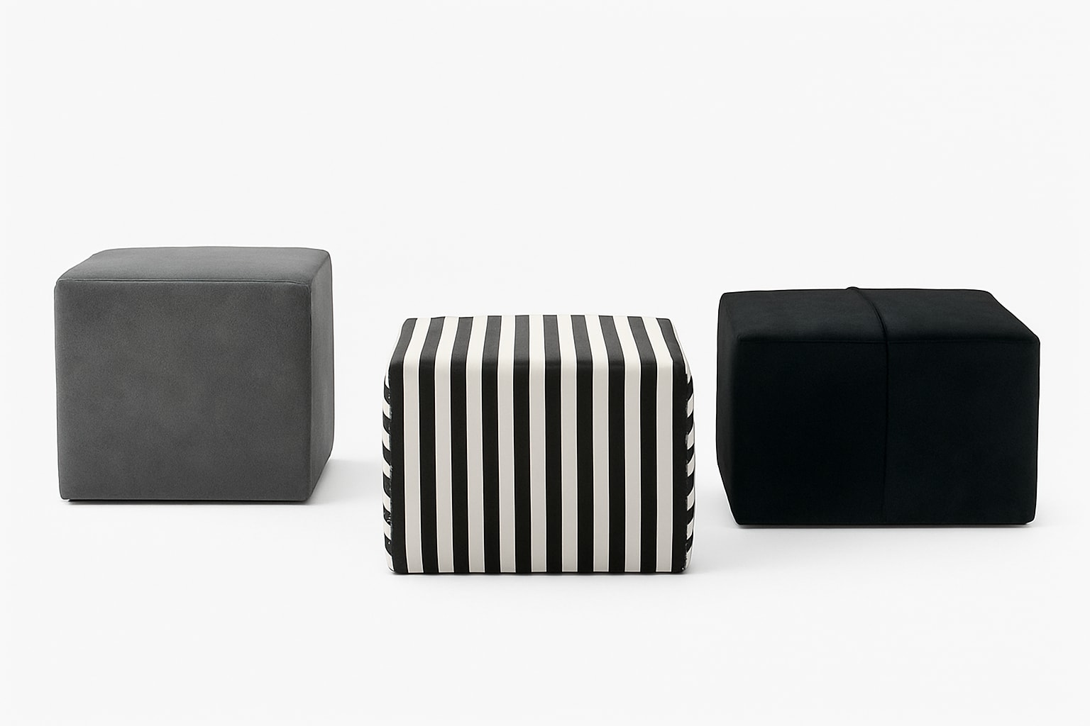 The striped fabric covering the ottoman creates a unique visual appeal, with its lines adding a dynamic element to the overall design. The ottoman’s cube shape exudes a contemporary aesthetic, making it a standout piece in any room.