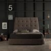 Crafted in Italy, Pacifico features a high headboard that is upholstered in luxurious leather, creating a striking focal point in the room. The tufted detailing on the headboard adds texture and dimension, while the padded upholstery provides a plush and comfortable surface to lean against while reading or watching TV.