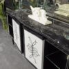 The Palais Royal Sideboard is not just a storage unit, it’s a work of art. It boasts a chromed brass intersection that adds a touch of modernity to its classic design. The crowning glory of this sideboard is its marble top in port black, a stunning contrast to the wooden structure that adds a luxurious touch to the piece.