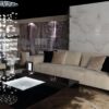 Crafted with a wooden structure and padded back cushions, this sofa offers both comfort and style. The armrest features an adjustable segment in the rear and a tile in engraved glass with intricate designs of Flowers, Horse, or Eagle, illuminated by LED lighting on the front. The plinth in silk metal finishing adds a touch of opulence to the overall look.
