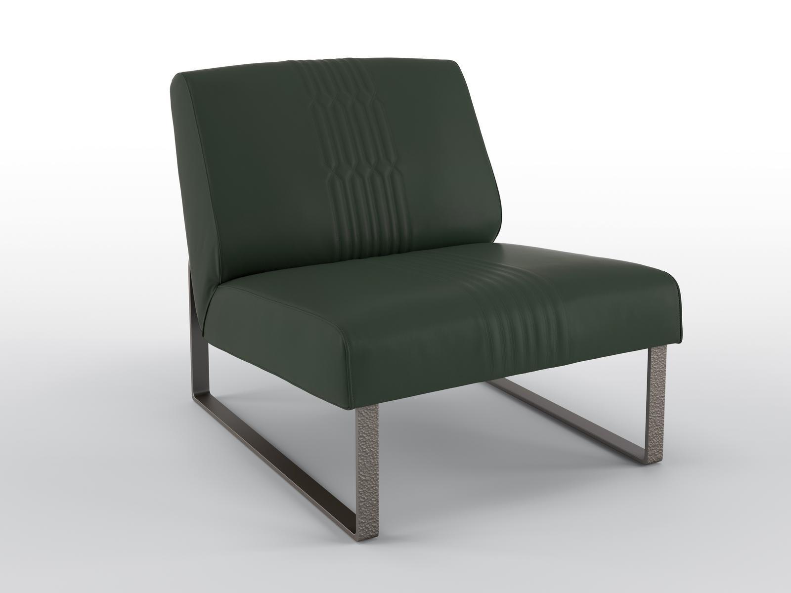 The Pandora Armchair is grounded on a hammered metal base, a testament to its sturdy construction. This piece is not just another armchair but an embodiment of contemporary design principles. Its sled base adds a unique aesthetic element, making it an ideal centerpiece for any room.