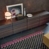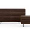 The Pandora Night chest features a sophisticated design with a rich oak color that adds a touch of elegance to any room. The drawers are constructed with a 50mm thickness of veneered honeycomb in spessart oak, providing both durability and beauty. The internal edges are accented with matte lacquered aluminum in your choice of 32 colors, allowing you to customize the look to suit your personal style.