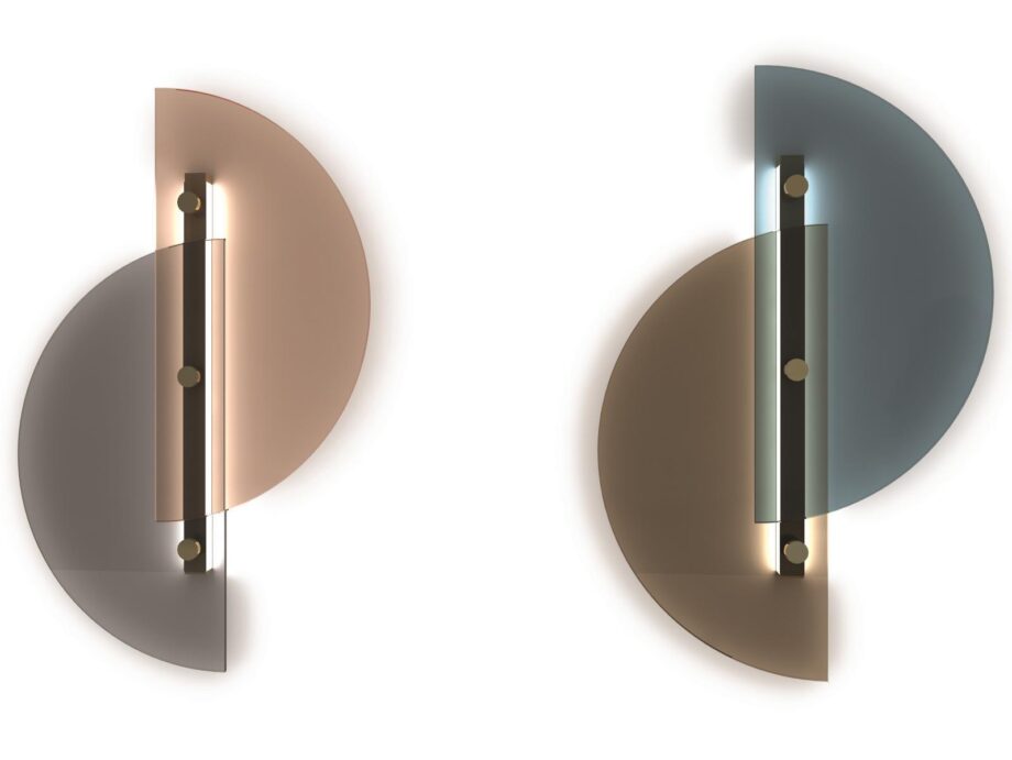 The Papillon wall lamp is a true work of art, designed to captivate those who appreciate beauty in its purest form. Its sleek and sophisticated design features two LED strips integrated into a central beam with a luxurious golden finish, supporting two elegantly colored glasses that exude a sense of elegance and refinement.