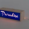 The Paradise Table Lamp features three front pieces that spell out SMILE, LIVE, PARADISE, creating a whimsical and uplifting ambiance in any room. Made from high-quality wood and Perspex, this lamp exudes a sense of sophistication and elegance.