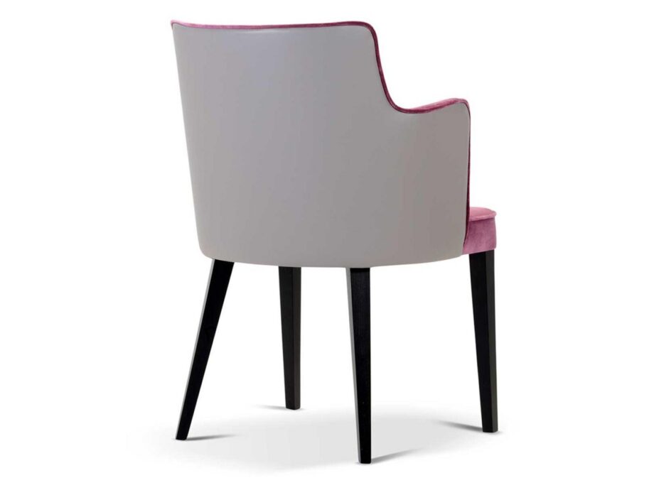 This modern chair from the Pat Collection offers customization options allowing you to select the upholstery and wood type for a personalized touch. The thoughtful design includes armrests, enhancing the comfort and lending the chair a chic look.