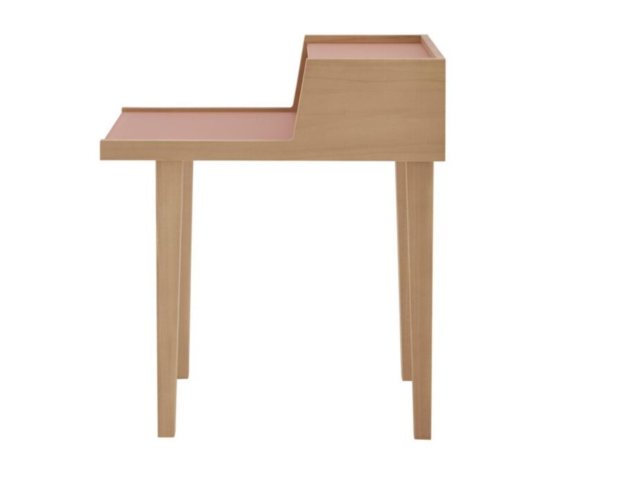 Elegance and functionality come together in the Pavane bedside table, designed by the talented Paola Sabourin. Crafted in cherry-finished solid tulipwood from France, this modern piece adds a touch of sophistication to any bedroom. The salmon-shaded glazed glass top creates a stunning contrast with the wood base, making it a true statement piece.