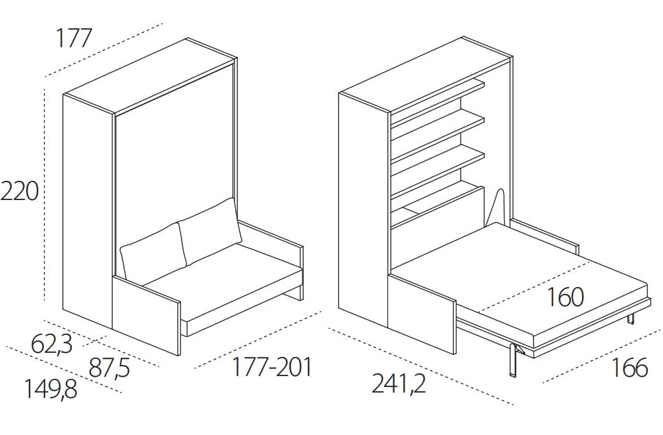 This convertible sofa features a tilting double bed with a patented CF09 slatted bed base, providing comfort and convenience for overnight guests. The innovative tilting mechanism, controlled by gas springs, ensures smooth operation and safety. The sofa is designed with a patented pivoting structure that easily slides under the bed when not in use, maximizing space in your living area.