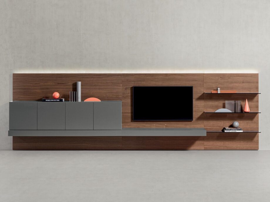 Ideal for those who value freedom in personalizing their living space, the People system allows you to express your creativity and sophistication. The combination of flowing lines, luxurious accents, and functional elements like spacer strips make this storage wall a versatile and stunning addition to any room.