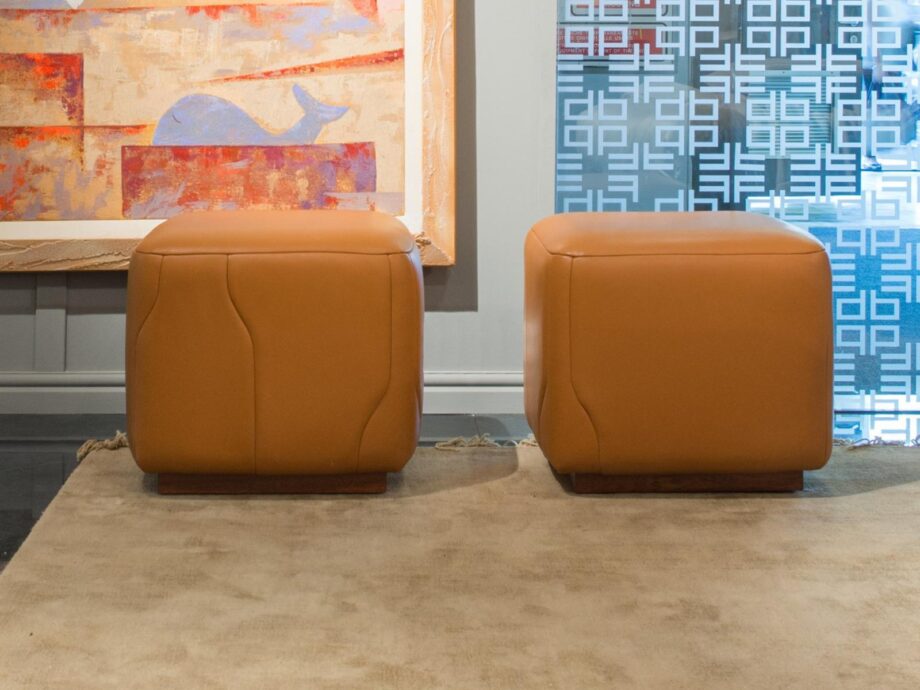 The Pier pouf features a stunning leather Daino in a rich Whiskey color, complemented by a base in a sleek Mahogany matte finish. The combination of these materials creates a harmonious blend of luxury and quality craftsmanship that will elevate the aesthetics of your home.