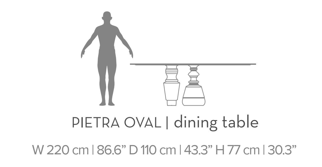 We invite you to inquire about the price of this limited edition Pietra Oval table. Experience the allure of timeless skills and exceptional craftsmanship, and add an element of luxury to your interior design. Your home deserves nothing less.
