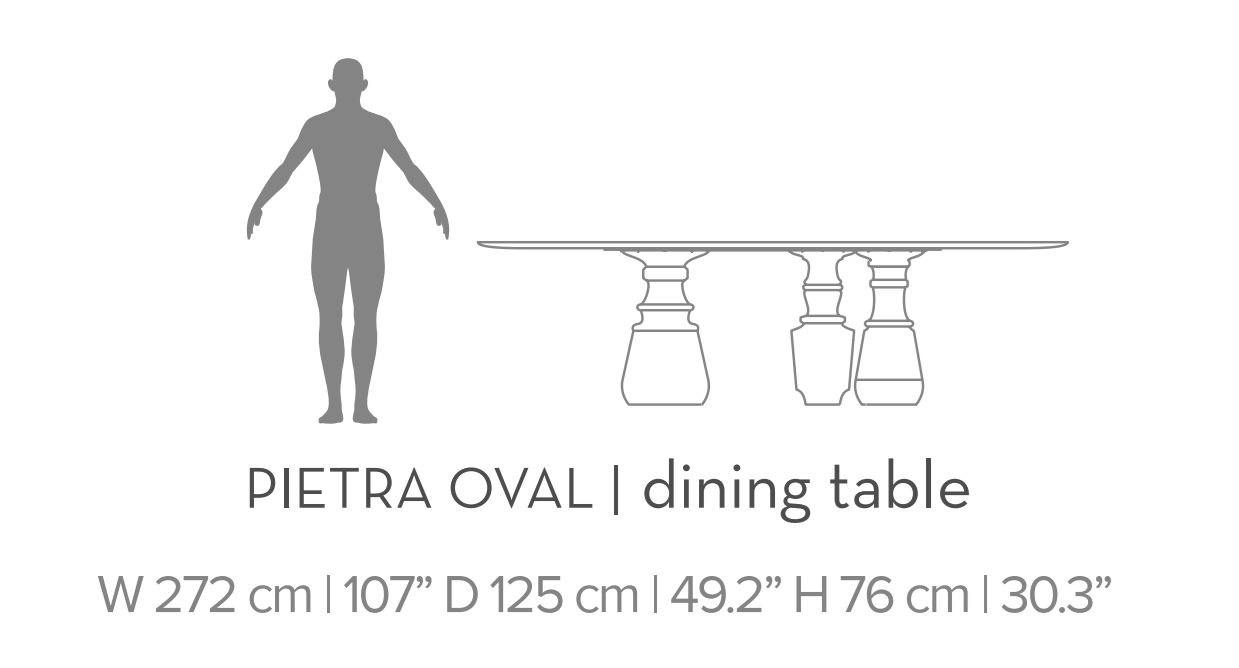 Indulge in the luxury of the Pietra Oval XL, a table that is much more than a piece of furniture; it is a statement of your refined taste. Contact us for pricing and make this timeless masterpiece a part of your luxurious abode.