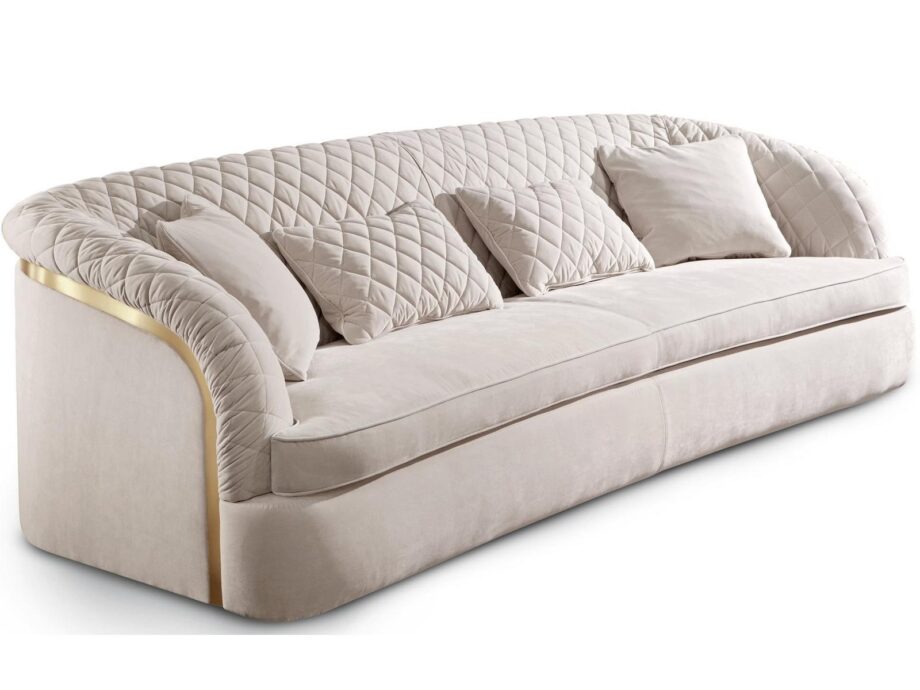 The Portofino is more than just a fabric sofa; it’s a testament to upscale aesthetics and an ode to the joy of opulent living. This luxurious sofa is generously padded, ensuring maximum relaxation after a long day. The tufted upholstery enhances the overall appeal, creating an exclusive vibe that is simply irresistible. The three spacious seats offer plenty of room, making the Portofino the perfect centerpiece for your lavish living room or sophisticated lounge area.