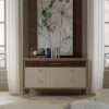 With its five spacious drawers and metal feet, the PR.112 chest of drawers offers ample storage space for your belongings while elevating the aesthetics of any room. The upper cabinet features canaletto walnut for a luxurious touch, while the lower drawers showcase a unique ‘wave’ impact decoration for added flair.