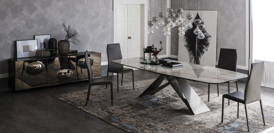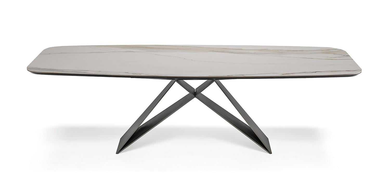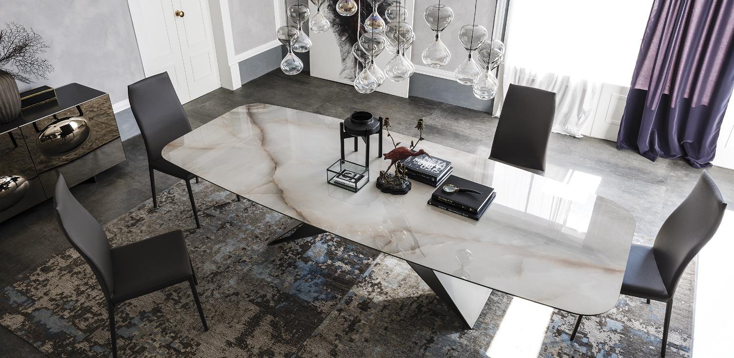Crafted with a sturdy metal base in titanium, black, or graphite with a durable ceramic countertop in a range of stunning shades, including Calacatta, Alabastro, and Portoro, the Premier Keramik is both functional and stylish. With its beveled edges and sleek design, this table is a versatile addition to your living room, kitchen, or dining area.