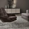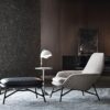 The supreme comfort of the chair is ensured by its state-of-the-art fire retardant padding – a perfect blend of safety and comfort, wrapped in a stunningly chic removable cover. The armchair is accompanied by a luxurious footstool, providing a complete relaxation experience for its users.