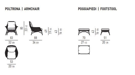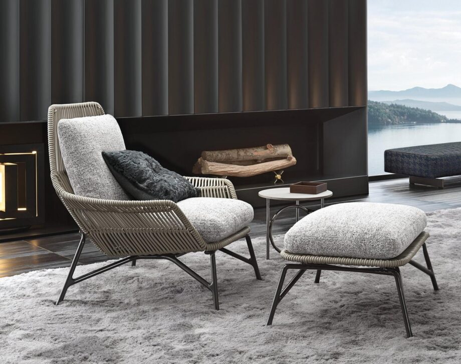 Available in four sophisticated shades – Dove Grey, Grey, Tobacco, and Dark Brown – the Prince ‘Cord’ Indoor armchair can effortlessly adapt to any interior design aesthetic. For those seeking a complete lounging experience, this armchair can be paired with a matching footstool that carries the same stylistic signature.
