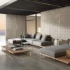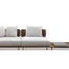 But the Quadrado is not just about comfort, it’s also about aesthetics. The system is interspersed with wooden tables and ottomans, equipped with trays or candle holders that can be arranged to create a surprising interlocking effect. This design, a tribute to the Japanese Metabolist architecture of the Fifties and Sixties, blends traditional elements of Brazilian architecture with the aesthetic sobriety and timeless elegance of Minotti.