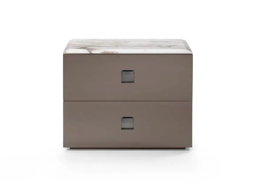 Featuring a distinctive recessed metal grip, the Rafael collection stands out for its attention to detail. The wood structure of the tables is finished with a mocha lacquer, giving them a rich and luxurious look. The marble tops add a touch of sophistication to the design, making these bedside tables a statement piece in any room.