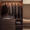 The handles of the Raggio Wardrobe are a design element in themselves, running along the entire height of the internal door frame in a lacquered aluminum or metallic finish. The options for hinged, sliding, and flush sliding doors give you the flexibility to customize the wardrobe to suit your needs and aesthetic preferences.
