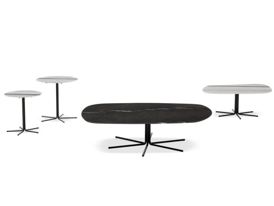 The Rays coffee table is not just a piece of furniture; it’s a work of art. The precious shades of the top, combined with the pewter-coloured finishing of the base, highlight the table’s firm identity. Each Rays table is a unique piece, reflecting the natural variations inherent in the stone materials used.