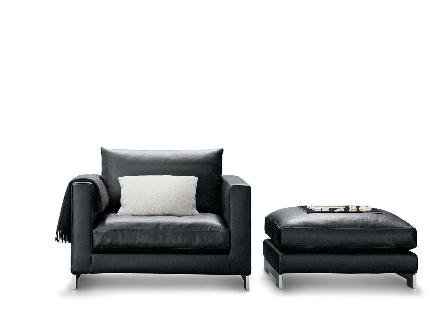 Available in both leather and fabric versions, the Reversi pouf offers a choice of luxurious finishes to suit your personal taste. The chrome-plated steel feet add a touch of sophistication to the overall design.