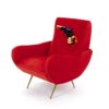 Indulge in the whimsical world of the Revolver armchair from the Seletti wears toiletpaper collection designed by Maurizio Cattelan. This modern piece exudes Italian flair and charm, perfect for those who appreciate beautiful and unconventional designs. Crafted with a fabric upholstery that features unexpected and eccentric images from the TOILETPAPER magazine, this chair is a true conversation starter.