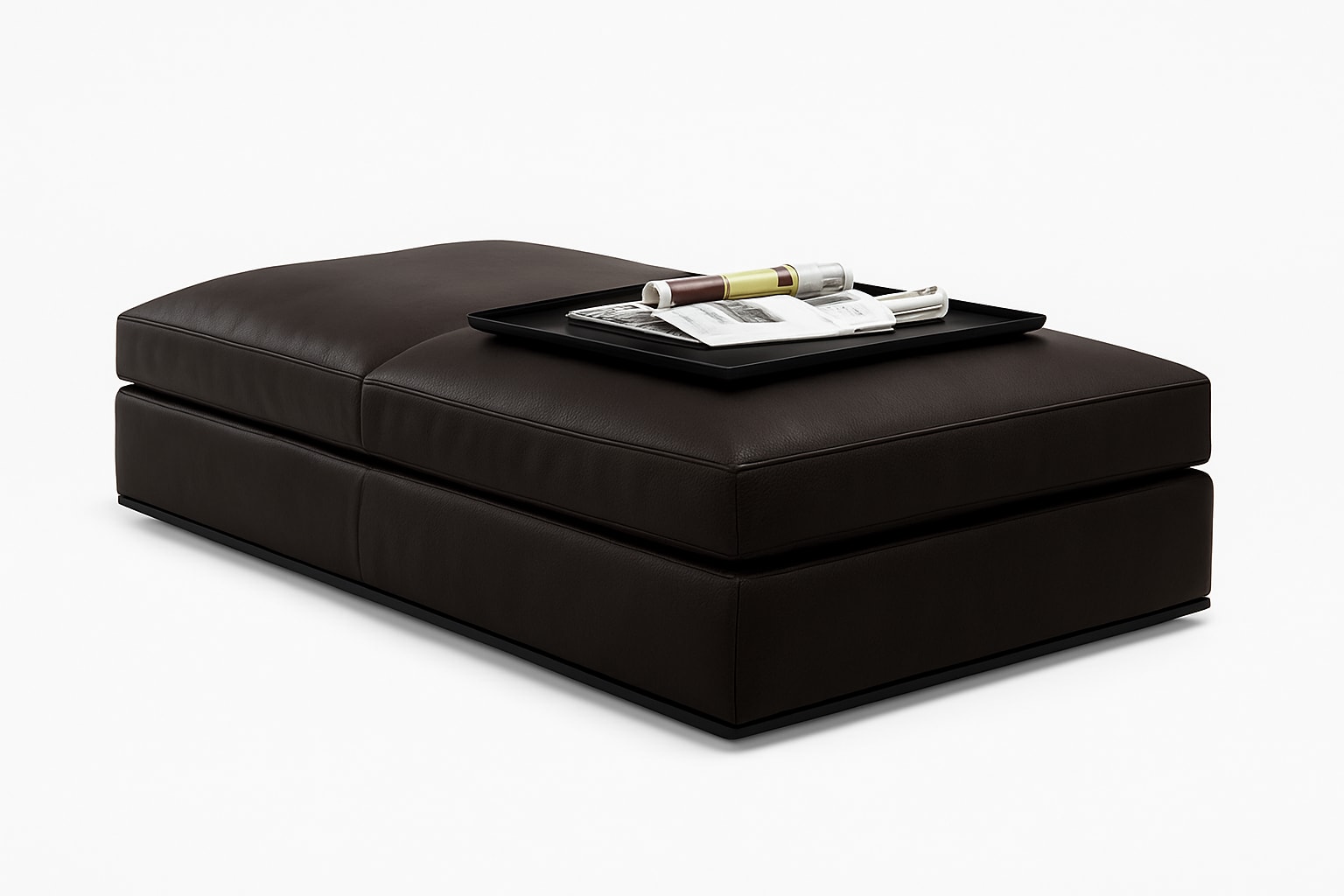 The upholstered leather finish adds a touch of luxury to the pouf, while the optional cushions enhance comfort and style. The metallic profile at the base, available in black chromed or pewter painted finishes, adds a sleek and modern touch to the design. With a wide range of cover options, including fabric with matching tones or contrasting profiles, Richard can be customized to reflect your personal style.