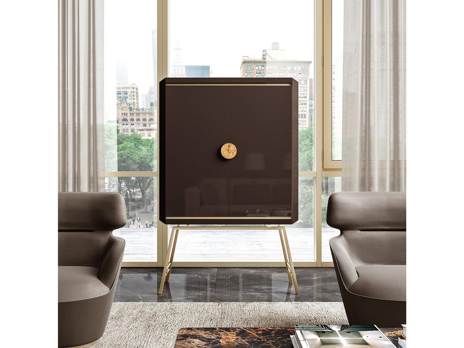 The compelling design of this bar cabinet roots in its statement volumes and reassuring lines. The pairing of rosewood and briarwood gives it an unmatched grandeur, while the addition of materials like the high-quality nubuck leather amplifies its luxury and provides utmost comfort.