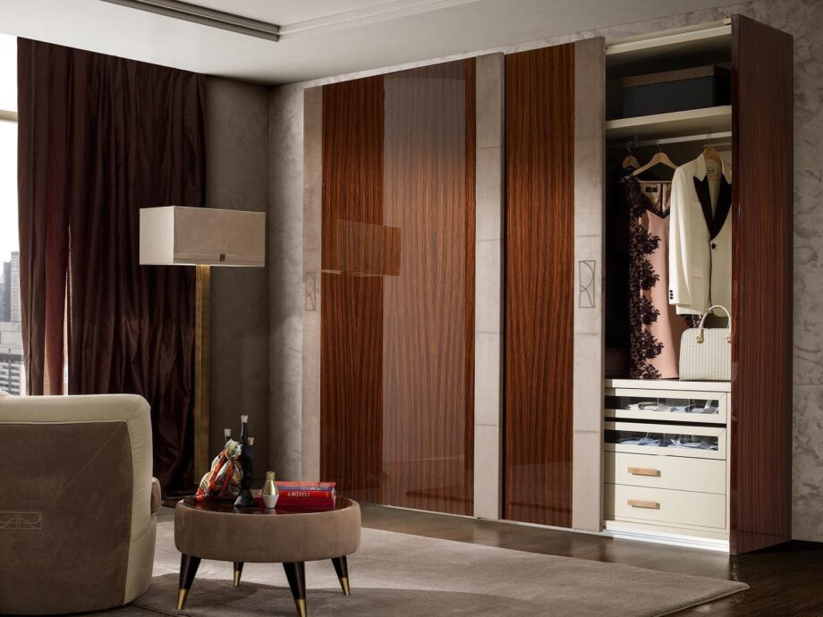 The distinctive design identity of the Richmond Upon Thames collection is characterized by statement volumes and reassuring lines, showcasing fine woods such as rosewood and briarwood. The inclusion of exquisite materials like nubuck leather further enhances the luxury of this wardrobe, creating an ambiance of ultimate comfort in your home.