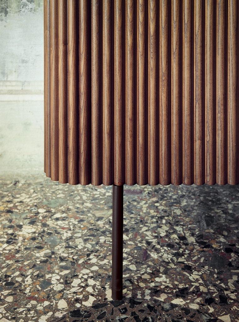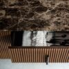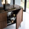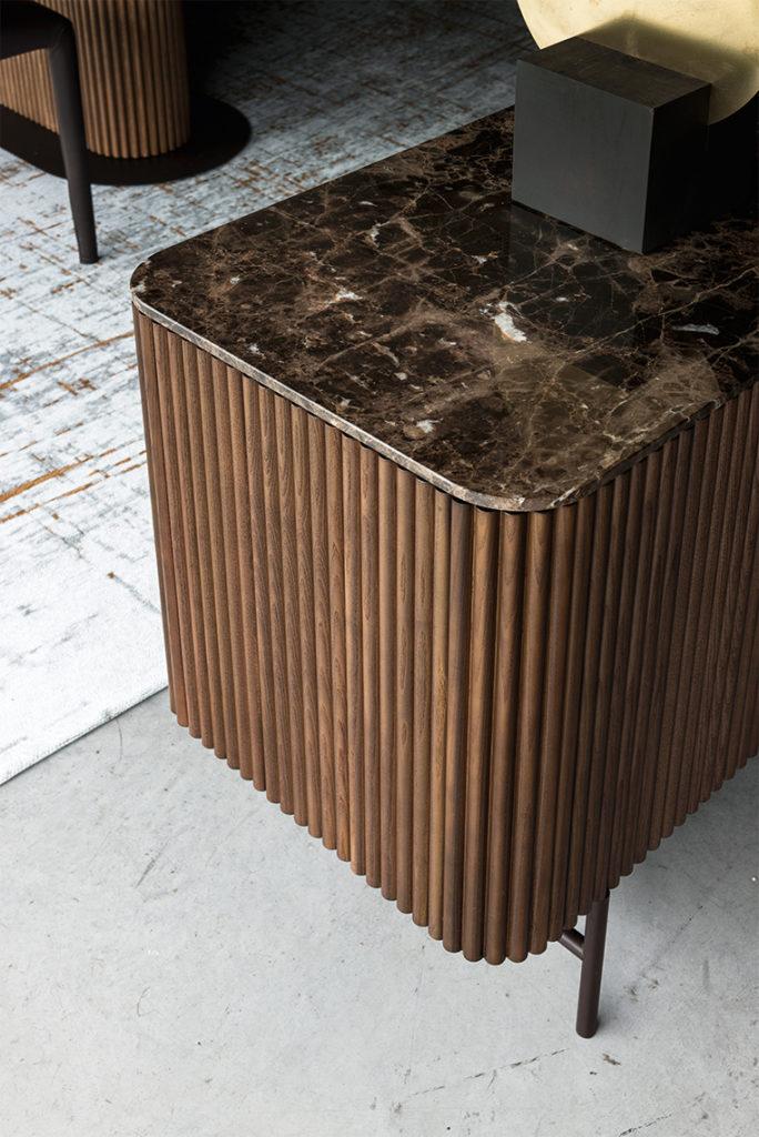The Rigadin collection offers a variety of living room furniture pieces, including an island table, Karol chairs, a swing table, and a spacious chest of drawers. Crafted from high-quality wood and veneer, each piece exudes durability and elegance. The embossed wooden facades add a distinctive touch, ensuring that your living space will be truly unique.