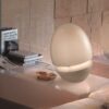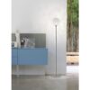 The Rina Pt Floor Lamp features a sleek design with a shade finishing in elegant white Murrina, creating a delicate and organic light texture reminiscent of a dandelion flower. The nickel frame adds a touch of luxury to the lamp, elevating any room with its contemporary aesthetic.