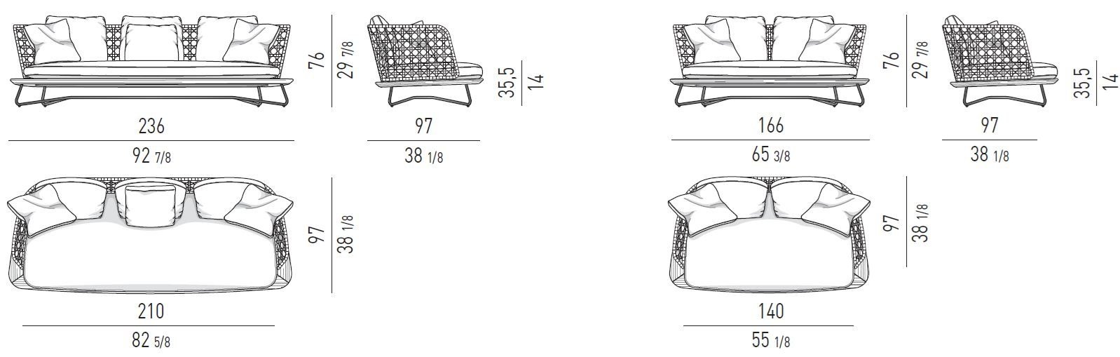 Step into the world of modern outdoor luxury with the Rivera Outdoor Sofa Collection. Designed by Rodolfo Dordoni, the Rivera Collection offers a contemporary interpretation of retro elegance with a unique Mediterranean vibe. The focus is on contrasts and unique combinations of materials designed for outdoor use. The result is an intimate and cosy outdoor setting, evoking warm and inviting Mediterranean settings.