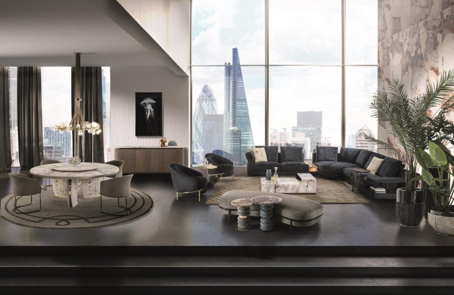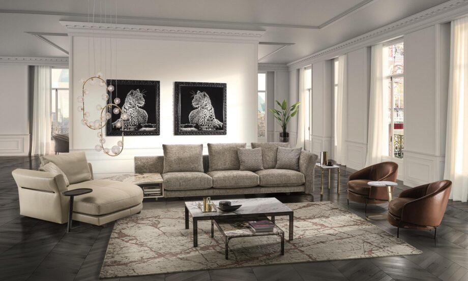 Elevate your living space with the exquisite Riverside sofa from the Loveluxe 2020 – sartoria collection by Longhi, designed by the esteemed Giuseppe Iasparra. This luxurious sofa is a true masterpiece of contemporary design, blending art deco elements with modern style to create a stunning piece that will captivate any interior design enthusiast.