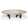 The Roll Keramik table features a robust metal base available in titanium or black lacquered finish, adorned with sleek black chrome steel details. The table top is crafted from luxurious ceramic in a variety of elegant shades, including Calacatta, Alabastro, Ardesia, and striking matt or glossy gold Calacatta, matt or glossy Portoro, and rich brown Zinc.