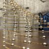 Made from high-quality metal, the Rosemery 6 features a metal casing with hued glass inserts, adorned with manual brush-strokes for a unique and artistic touch. The pendant lamp is embellished with beautiful glass pendants and silk shades, adding a touch of luxury to any space.