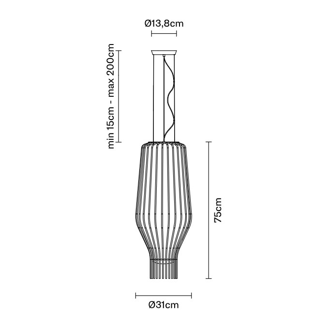 Designed to provide direct light, the Saya F47 A17/19/25 pendant lamp combines traditional craftsmanship with a modern aesthetic. The cage-inspired design evokes a sense of timeless beauty, drawing inspiration from the blending of Eastern and Western cultures.