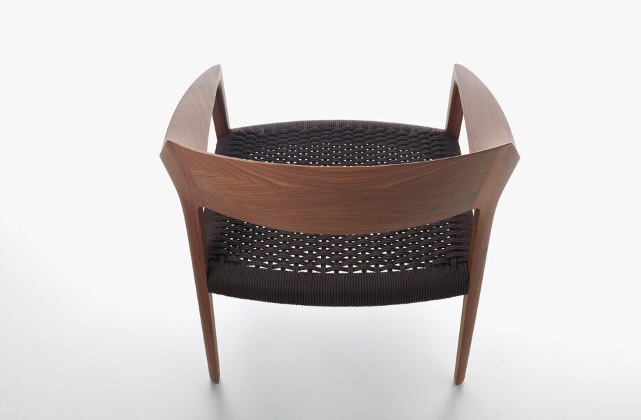 Elevate your living space with the exquisite Scheggia easy chair from the renowned designer Mario Ferrarini. Crafted with precision and artistry, this modern piece exudes elegance and sophistication. The chair features a stunning outline in solid Canaletto walnut, showcasing the natural beauty of the wood. The seat is intricately woven with a dim brown ‘Gassa’ rope, adding a touch of warmth and texture to the design.