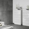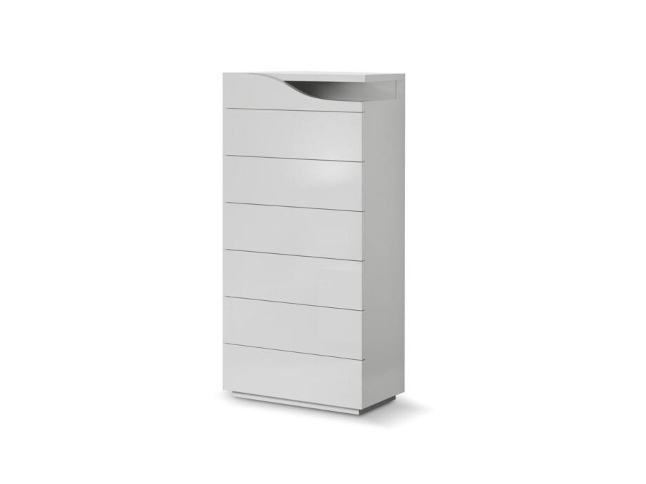 Available in a range of luxurious finishes including gleaming lacquered, Oakwood Henné, Miele, or Beluga, the Segno chest of drawers is a statement piece that combines elegance with functionality. The sleek design features four spacious drawers and an upper compartment in clear glass, providing ample storage space for your belongings while adding a touch of glamour to your decor.
