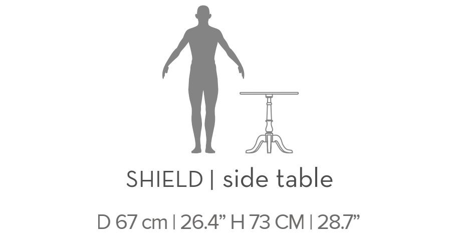 Patterned after the silhouette of the majestic Atlantic Ocean, the Shield’s design flows with grace and ease. Its round shape effortlessly blends into any interior design scheme, making it a perfect centerpiece for your living room. The table rests on a three-star base column ending in three delicate feet. These legs are distinctive and decorative, evoking the charm of antique furniture.