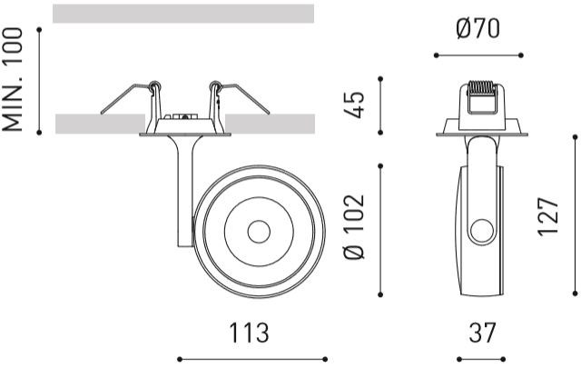 Featuring energy-efficient LED light bulb types, the Six L Recessed spotlight offers a perfect balance of functionality and style. Its innovative combination of reflector and lens ensures the maximum uniformity of light distribution, creating a warm and inviting ambiance in your space. The airy arm design allows you to freely articulate the spotlight, directing light rays in any direction you desire.
