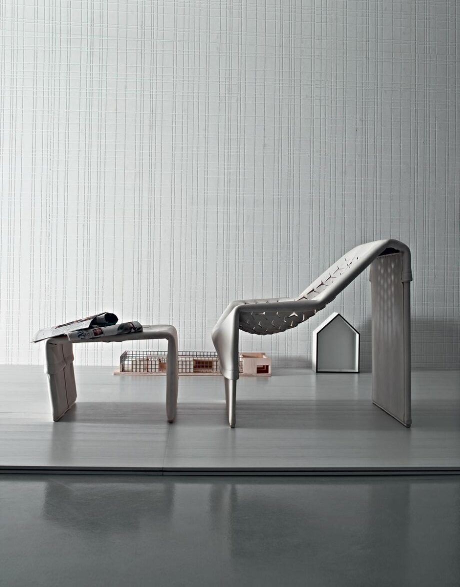 Inspired by Nouvel’s iconic work at the Musée du Quai Branly in Paris, Skin redefines the concept of contemporary furniture design. The unique shroud leather cover creates a seamless silhouette, showcasing an extraordinary pattern that sets this armchair apart from the rest. Complete with a matching footstool, the Skin armchair offers unparalleled comfort and style for your living space.
