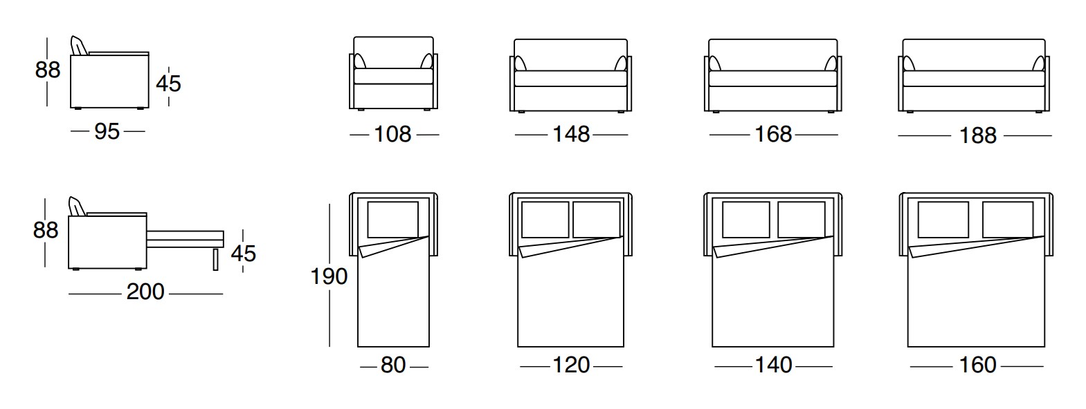 The Slalom excels as a sofa bed, boasting an 11 cm high polyurethane foam mattress that is elegantly covered with a layer of acrylic. This high-quality mattress ensures a soothing sleep experience, making your guests feel right at home. If desired, the mattress can also be supplied in Polilatex HT with natural latex for an additional touch of luxury.