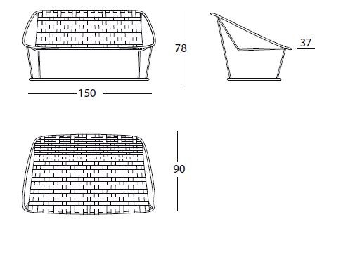 Designed to bring you closer to nature and enhance your outdoor experience, the Small Sofa features soft and cozy shapes that create a visual luminosity in your space. The synthetic elastic straps provide comfortable springing, making it ideal for lounging and relaxing outdoors. The cushions and mat are covered with high-quality fabrics and leathers designed for outdoor use, ensuring durability and longevity.
