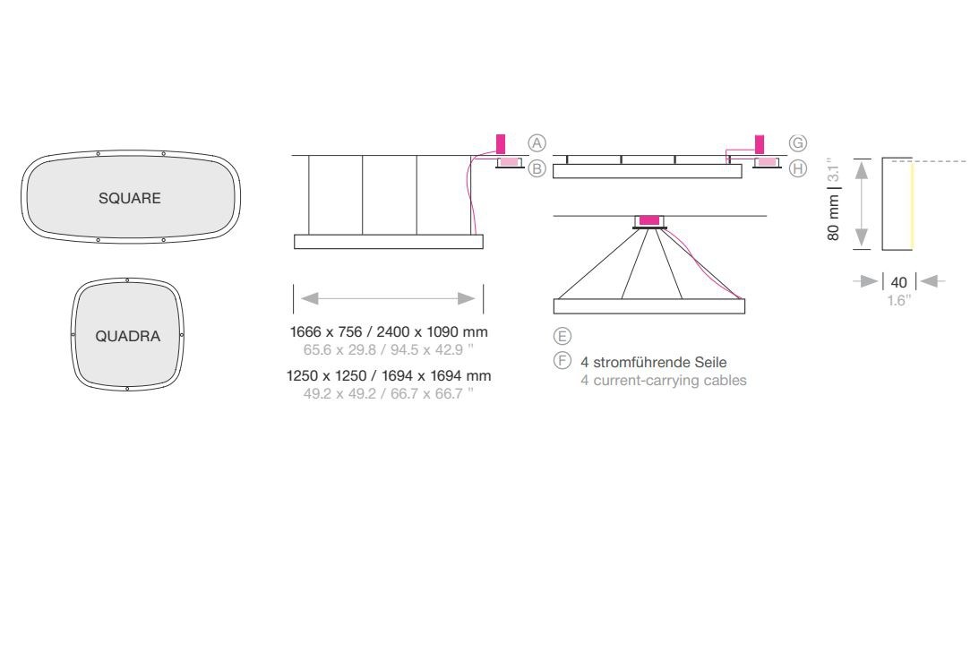 Designed to be a focal point in any room, this pendant lamp features a 4-point steel link suspension that adds a touch of elegance to your space. The Soft Quadra comes with a 5000mm power supply cable in silver, complete with an external power supply unit for easy installation on a suspended ceiling.