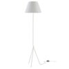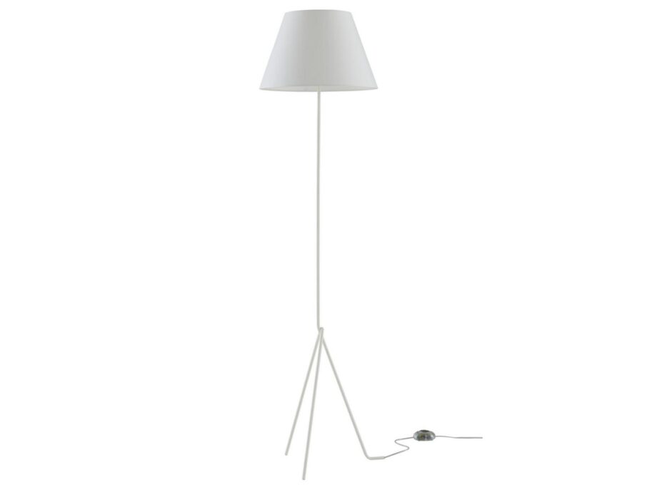This floor lamp comes with a 116W E27 standard eco halogen bulb, which is equivalent to a 150W incandescent bulb, ensuring efficient and effective lighting. The structure of the lamp is made of steel wire twisted to form a sleek silhouette, finished in a textured silk white lacquer. The white chintz shade adds a touch of sophistication to the design, creating a visually appealing look.
